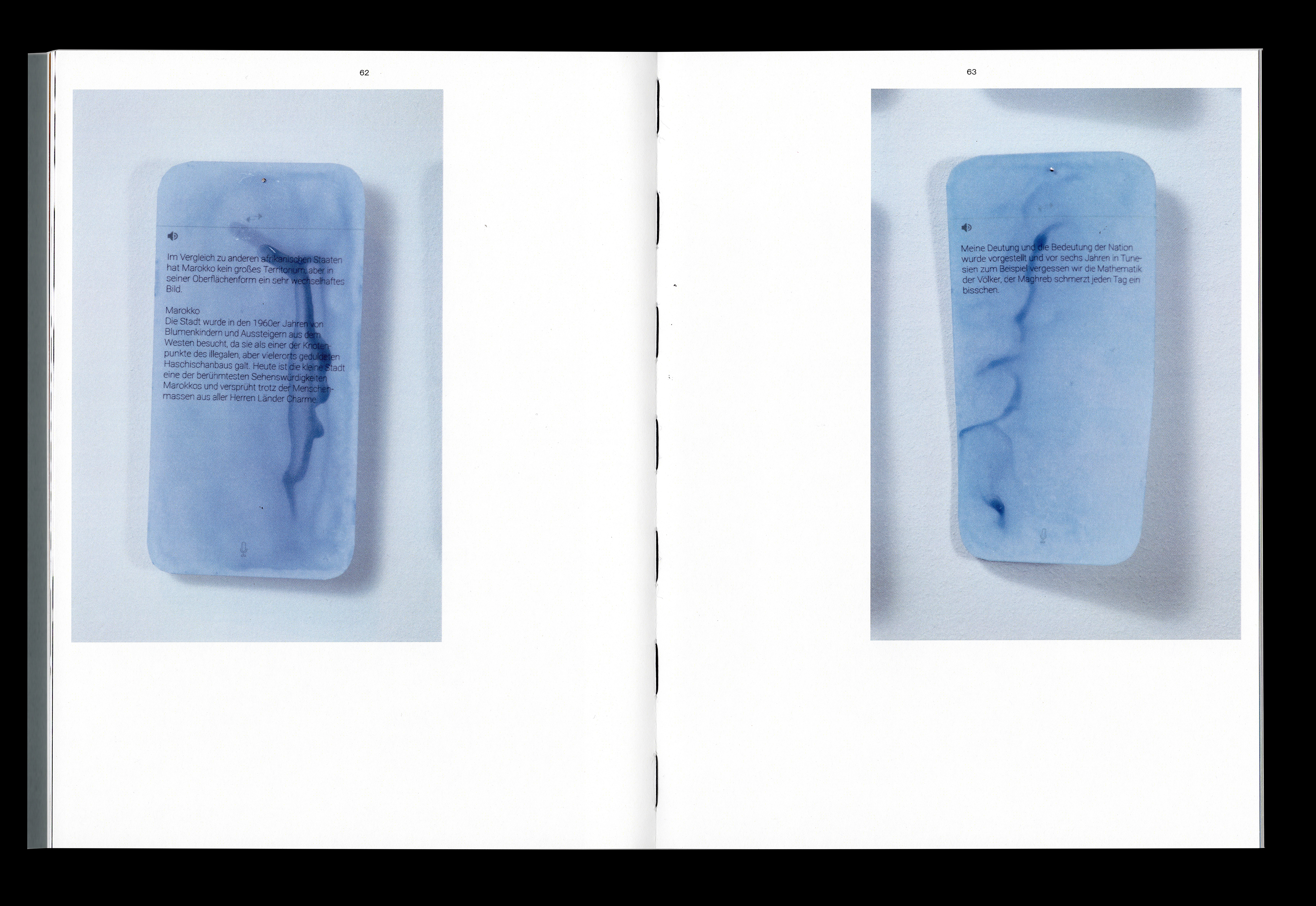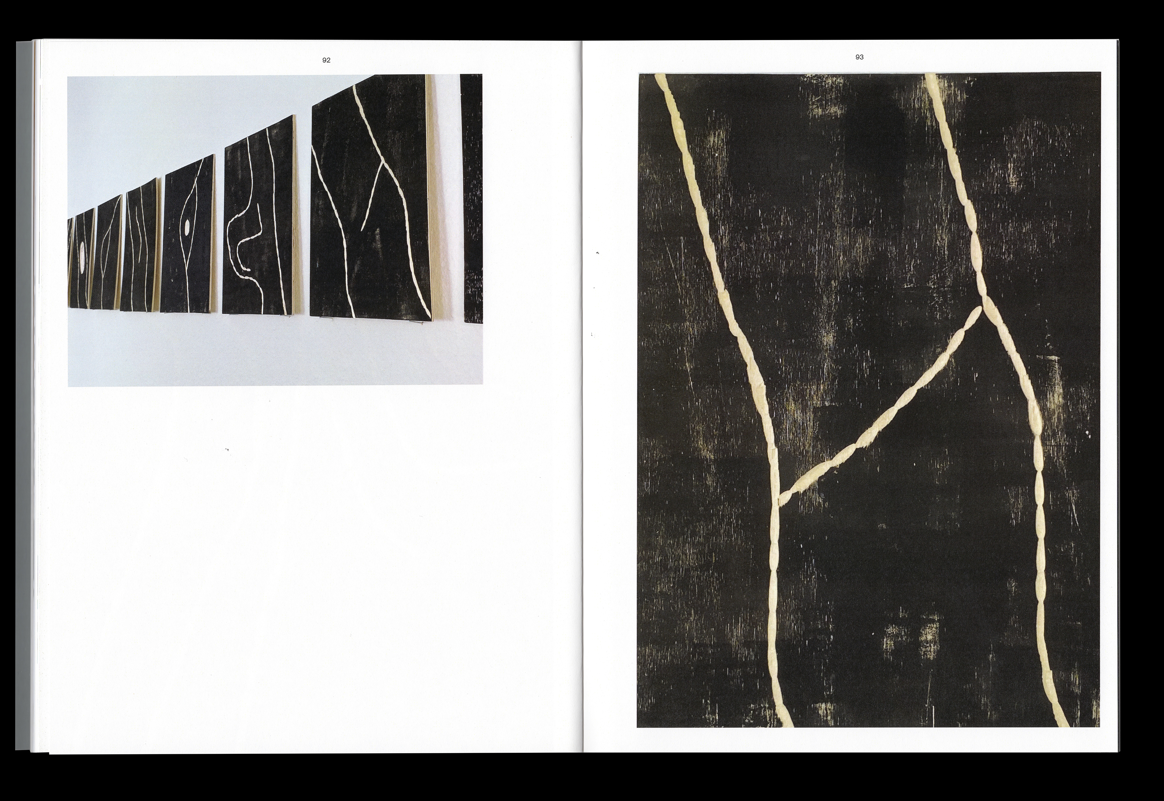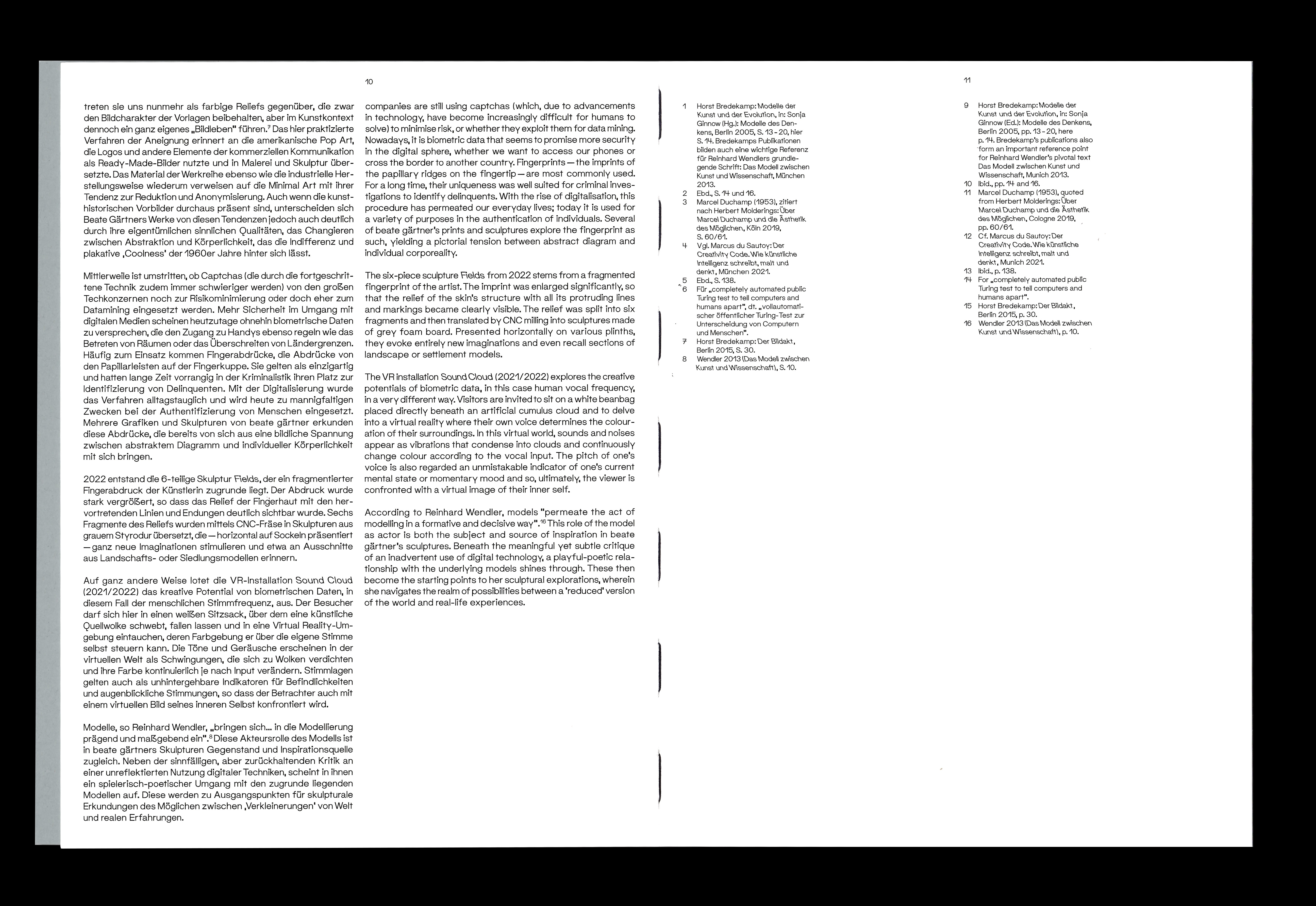 Catalogue for the artist Beate Gärtner. Designed as a Swiss brochure with open thread stitching. Bilingual layout through direct juxtaposition of the two languages in dialogue.