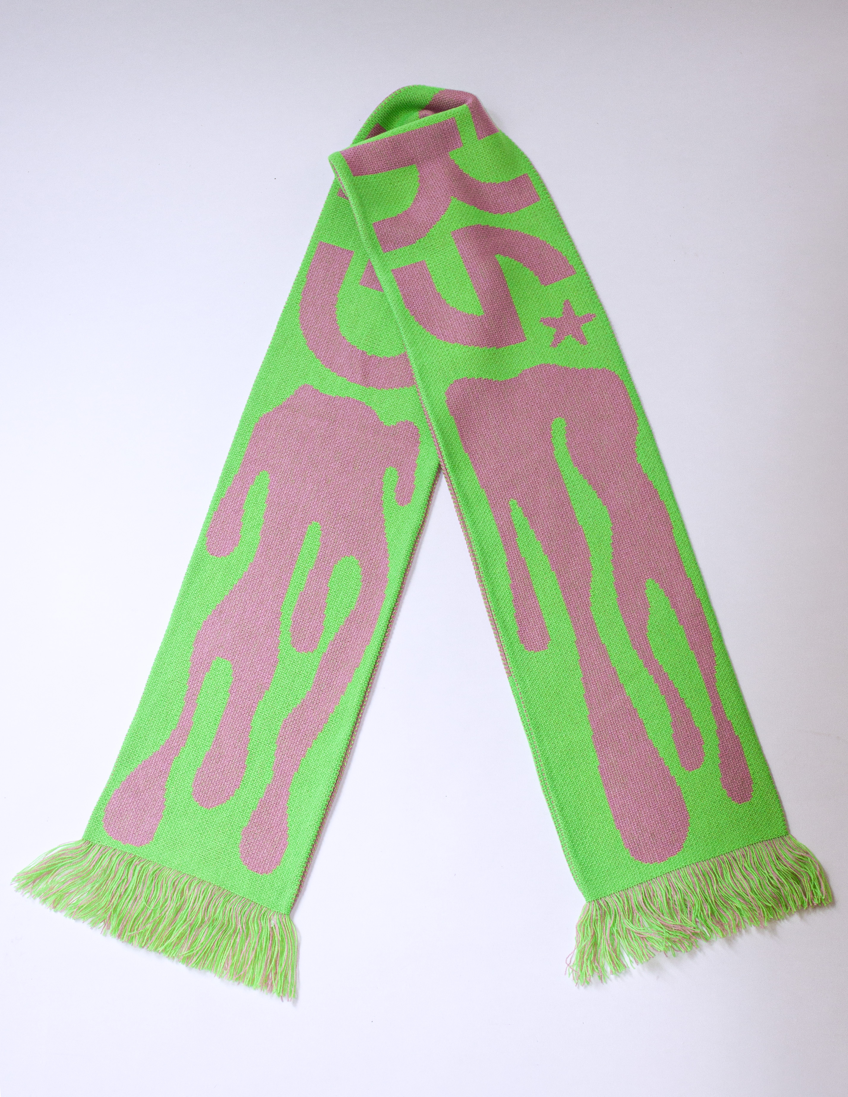 Development and design of various merch elements for CHICKS* free performance collective, such as caps, socks, scarves, tattoos and stickers as business cards and car wrapping design. The performance mobile of the feminist collective was visually clad in pink glitter and iridescent foil as part of an overall concept.
