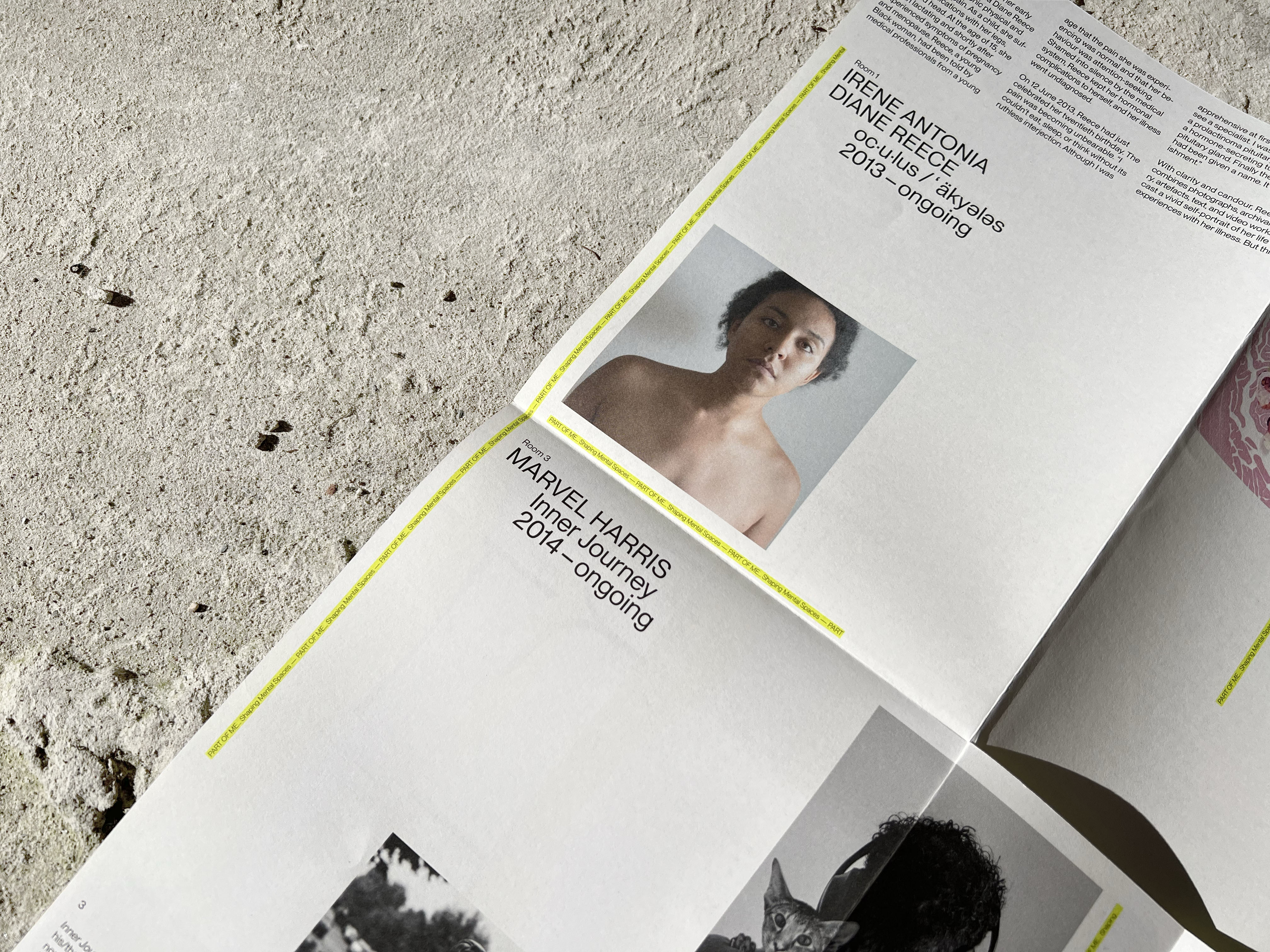 Ausstellungsdesign und Identität für 'Part of Me... Shaping Mental Spaces' in FOTODOK Utrecht. FOTODOK bringt Künstlerinnen und Künstler zusammen, die mit ihrer Praxis auf ihre gelebten Erfahrungen mit verschiedenen mentalen Zuständen reagieren: Irene Antonia Diane Reece, Marvel Harris, Mandy Nijhof, Peggy van Mosselaar. Outsiderland präsentiert einen Pop-up-Shop und eine Installation von Jan Hoek und Bruin Parry; Aàdéṣọ̀kán und Klaus Compagnie, Yasmine van Haesebroucke, Niels-Jan Tavernier; Laetitia Bica und Samuel Cariaux; Martine Derks und Model Nina 666. Eine besondere Ergänzung der Ausstellung ist eine Satelliteninstallation von A Story to Tell, or: Regarding Male Eating Disorders von Mafalda Rakoš und Ruben de Theije im Astare zu sehen sein.