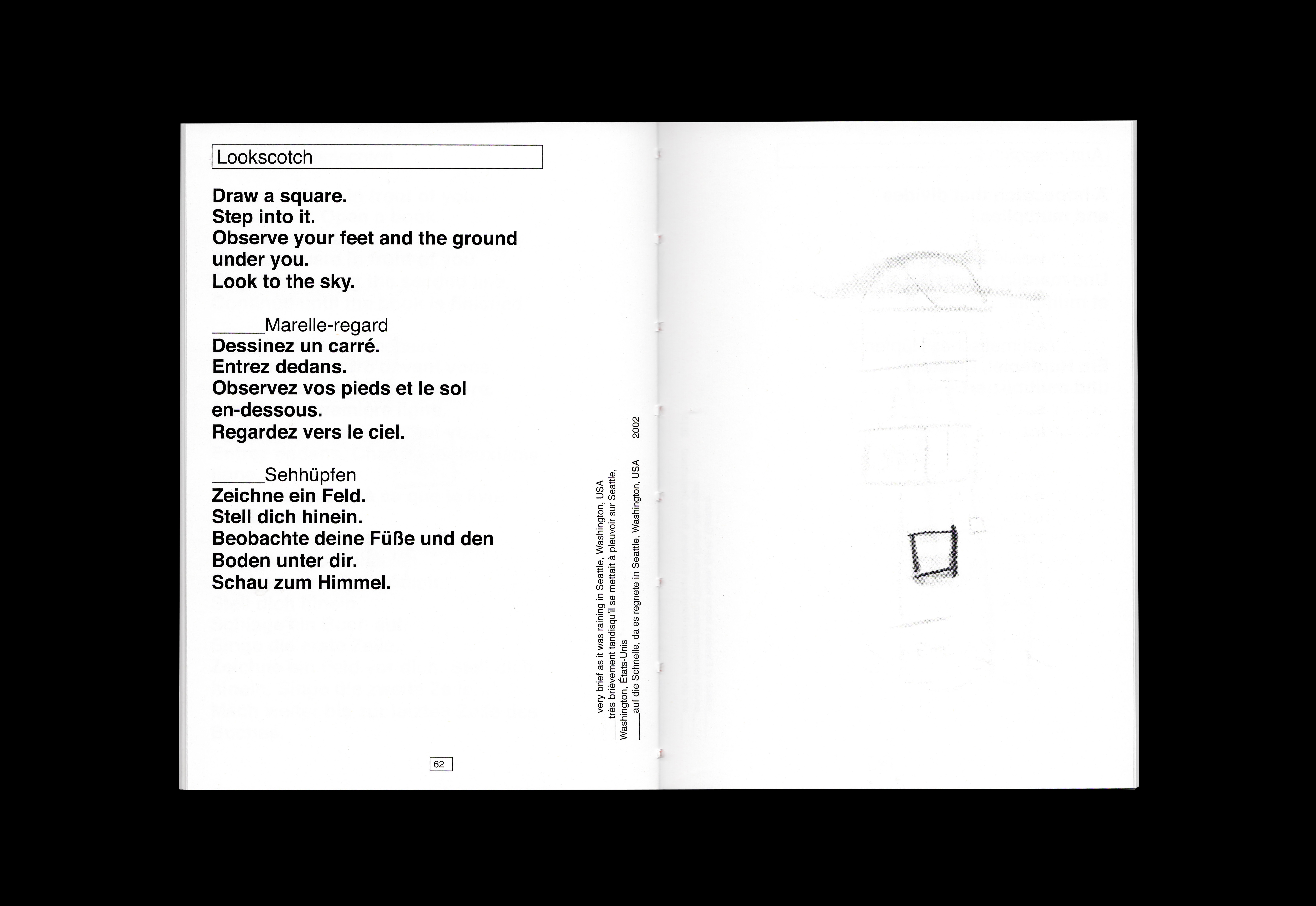 V_____erlag für Handbücher veröffentlicht das Organon 3. Darin enthalten sind drei neue Handbücher, die sich aus komplett verschiedenen Richtungen dem Urbanen und der Bewegung darin genähert haben. Rrtt von Yeongbin Lee und Clemens Böckmann, die uns durch den narrativen Bruch des Städtischen (der Stadt Berlin) führen. Mapscotch von Mary Flanagan, beherbergt eine Sammlung ihrer über Jahre angefertigten Hüpfspielvarianten für Kreide und Asphalt. Außerdem Sign and return von Josh Widera, eine Anleitung zur und Darstellung der Figur des Fahrradkuriers